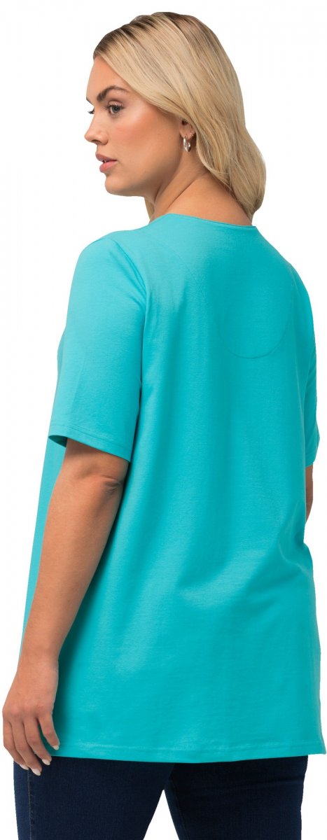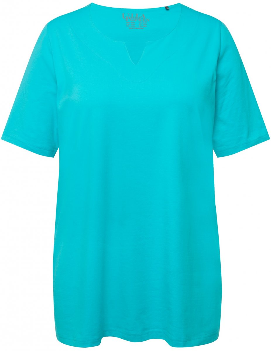 Dydžių vadovas - Ulla Popken Essential Notch Neck Stretch Tee Deep Aqua