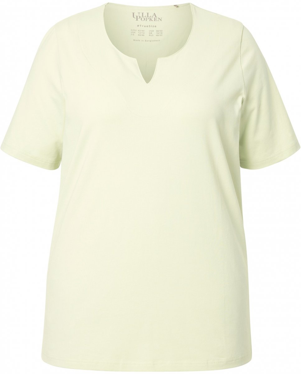Dydžių vadovas - Ulla Popken Essential Notch Neck Stretch Tee Pistachio
