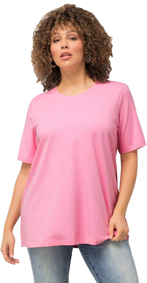 Ulla Popken Essential Round Neck Stretch Tee Light Pink