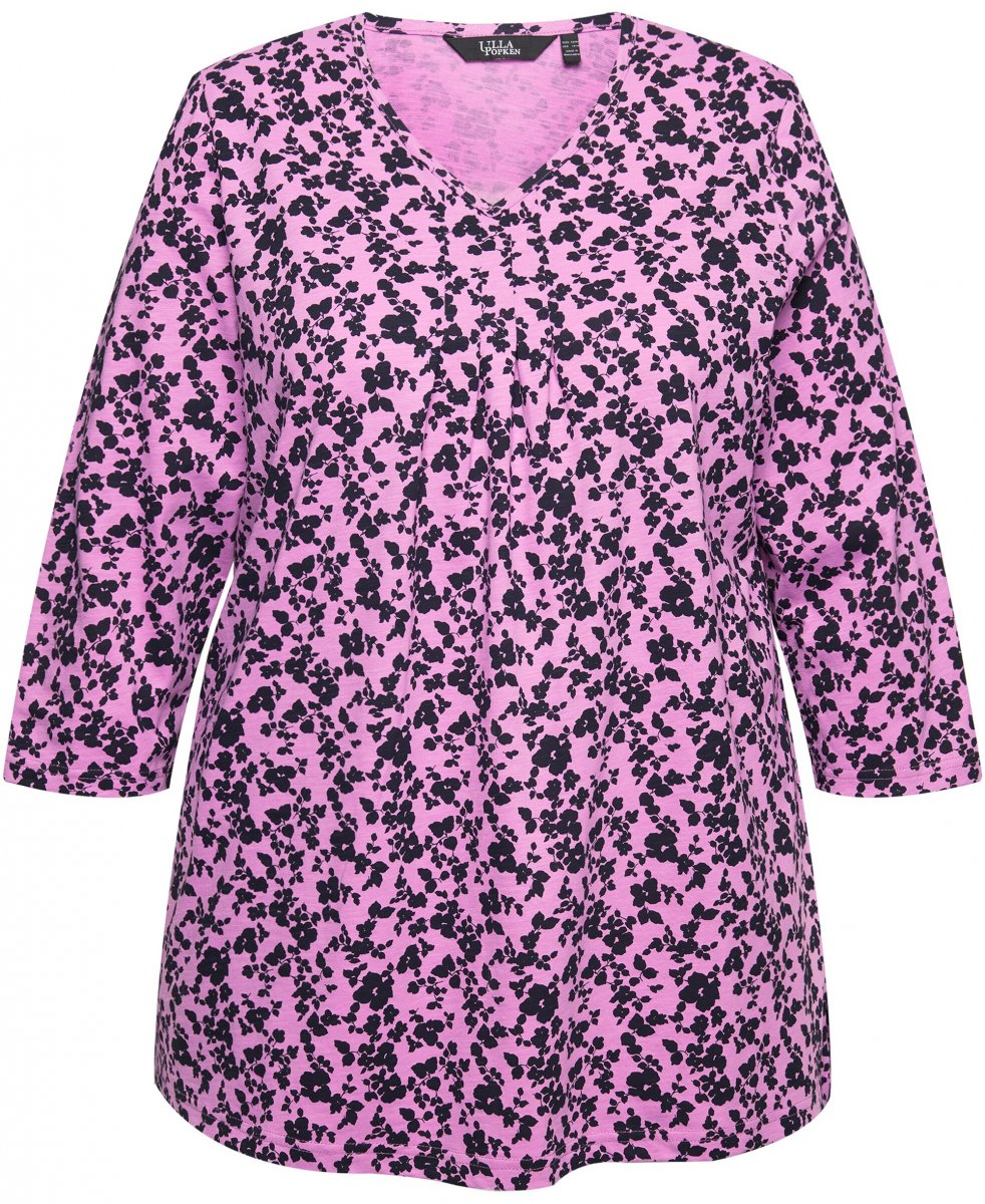 Dydžių vadovas - Ulla Popken Floral 3/4 Sleeve V-Neck A-Line Tee Amethyst