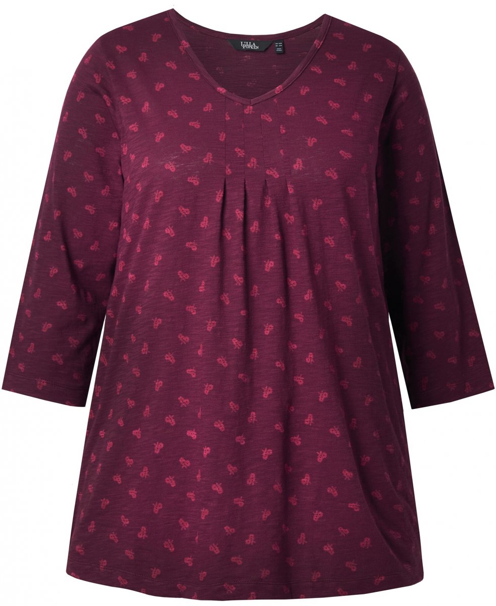 Ulla Popken Flower Print 3/4 Sleeve Tee Dark Ruby