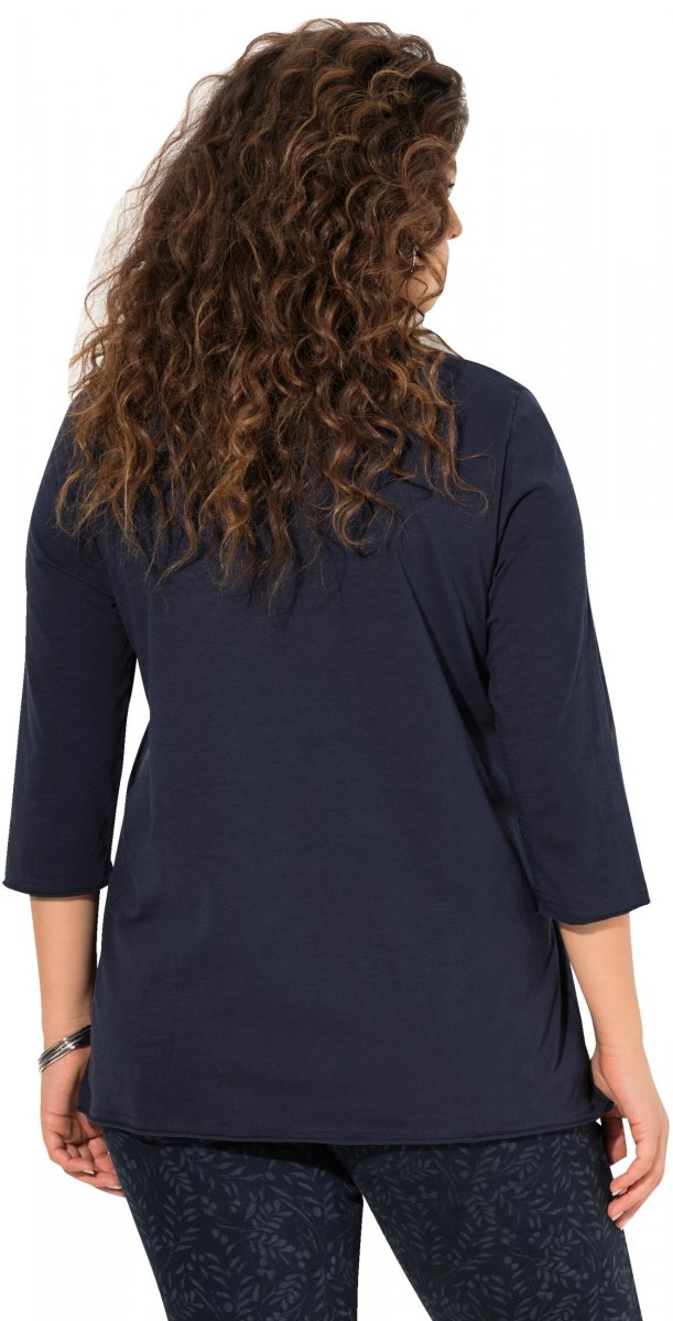 Ulla Popken Peace Love Life 3/4 Sleeve Graphic Tee Navy