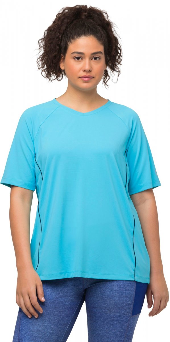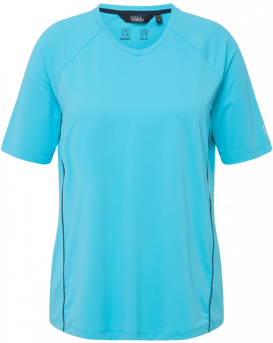 Ulla Popken Piping Accent Functional UVP 50+ Stretch Knit Top Bright Turquoise