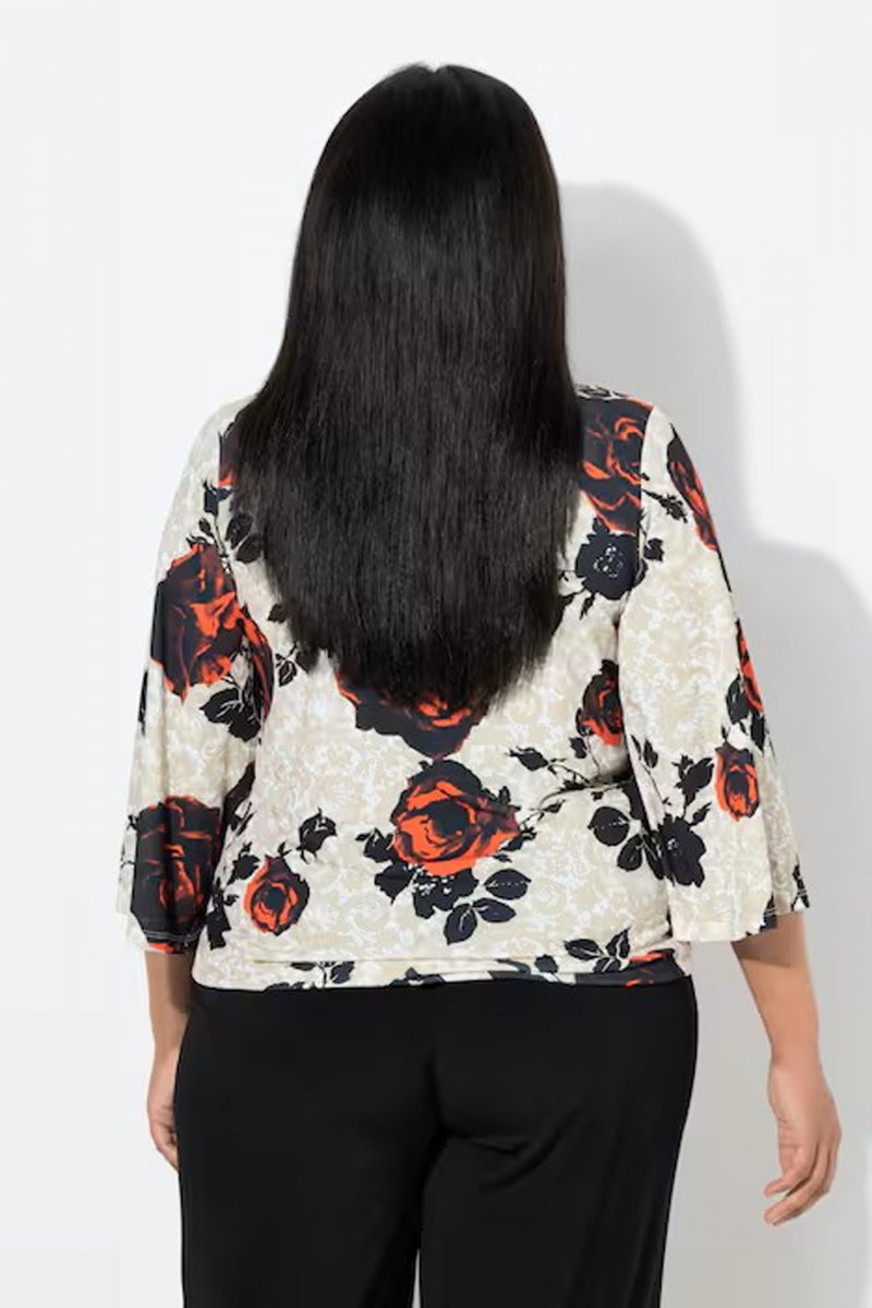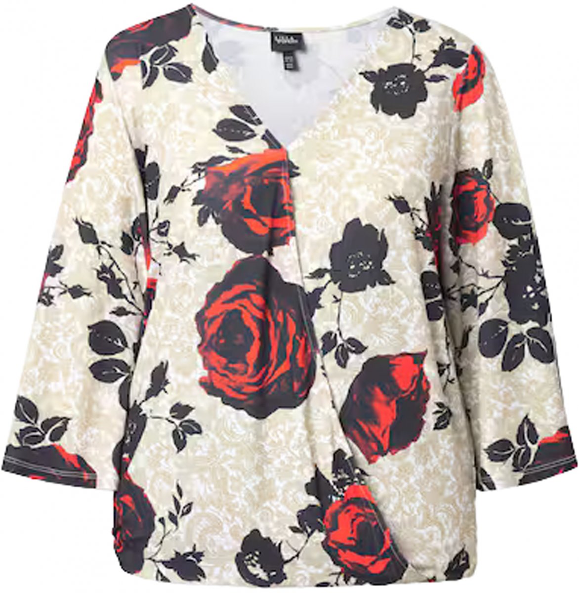 Dydžių vadovas - Ulla Popken Rose Print Faux Wrap Top Off-White
