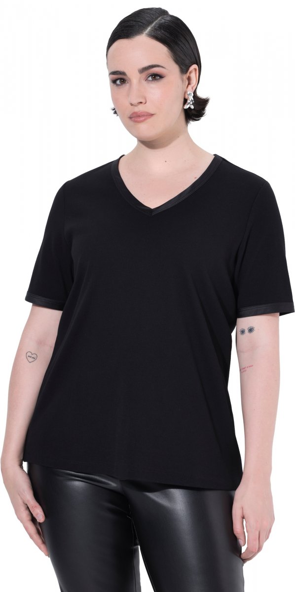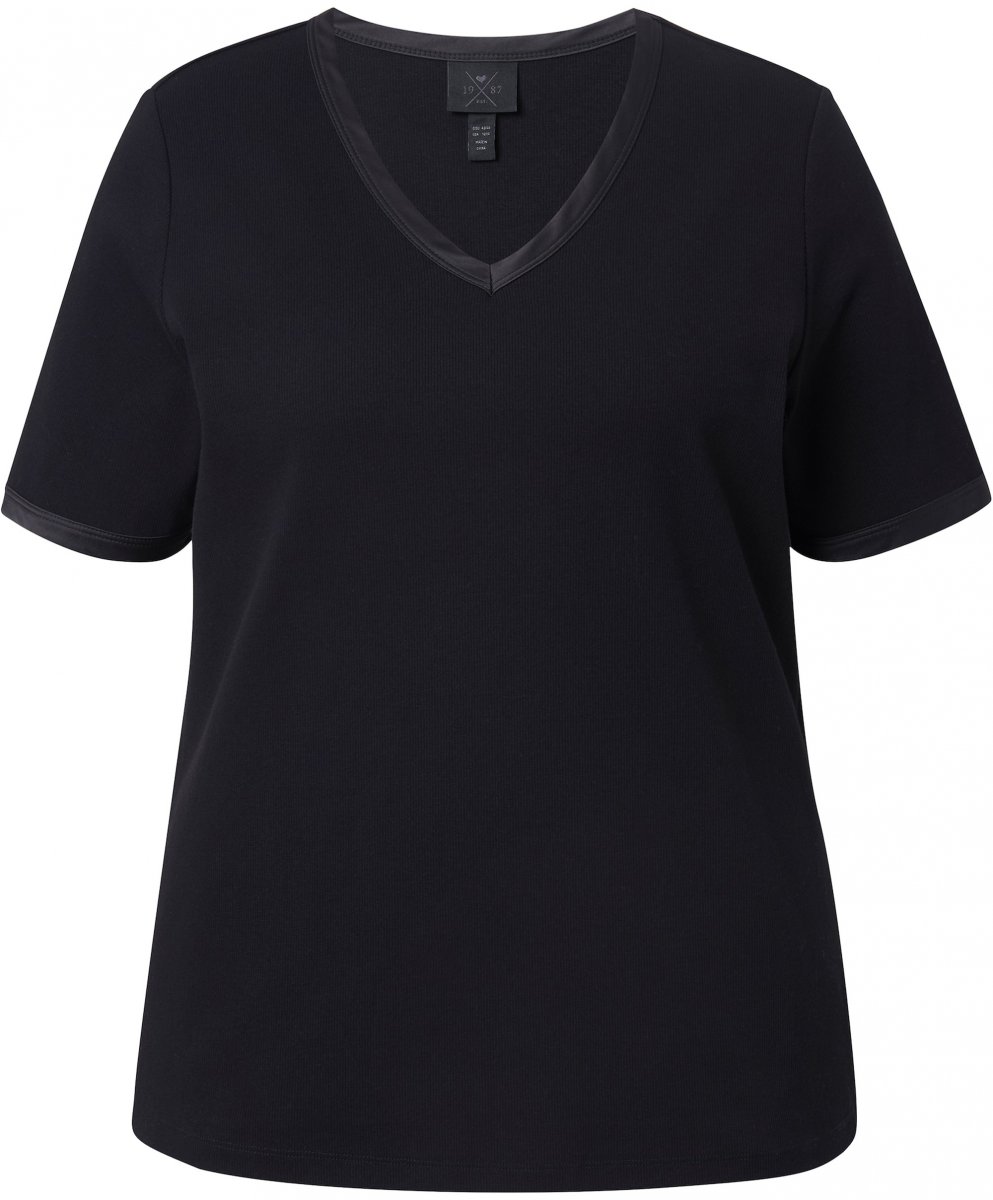 Dydžių vadovas - Ulla Popken Satin Trimmed Ribbed Jersey Short Sleeve T-Shirt Black