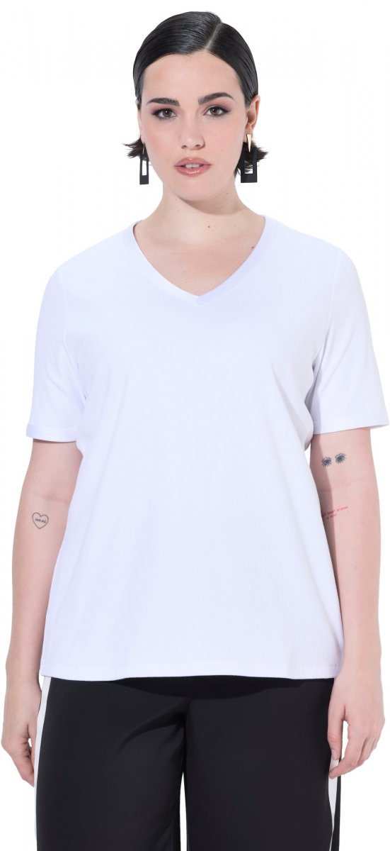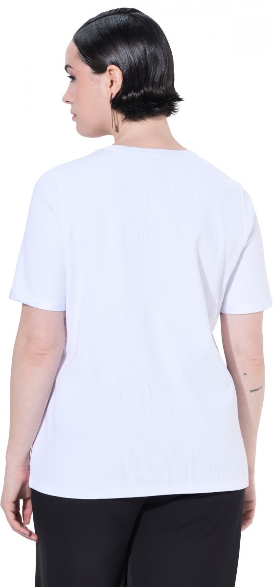 Dydžių vadovas - Ulla Popken Satin Trimmed Ribbed Jersey Short Sleeve T-Shirt Snow White