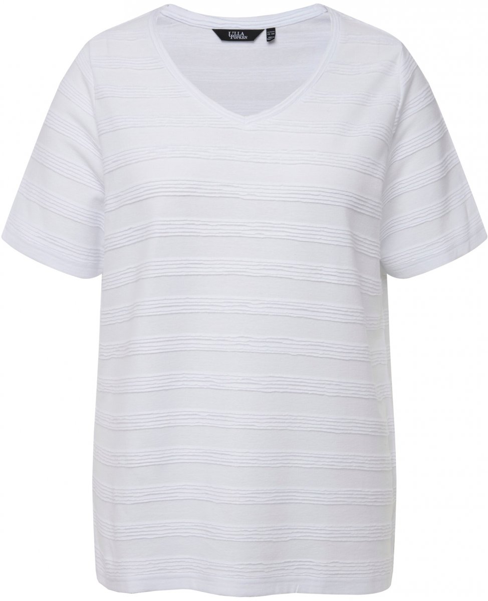 Ulla Popken Textured Striped Short Sleeve Tee Snow White
