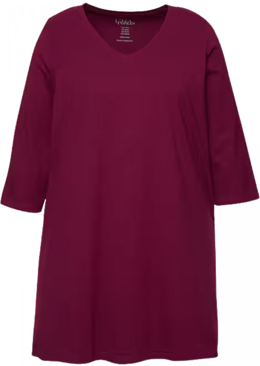 Dydžių vadovas - Ulla Popken V-Neck Swing A-line Hem Cotton Knit Tunic Dark Berry