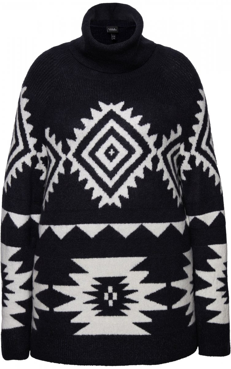 Ulla Popken Aztec-Inspired Long Sleeve Turtleneck Sweater Navy