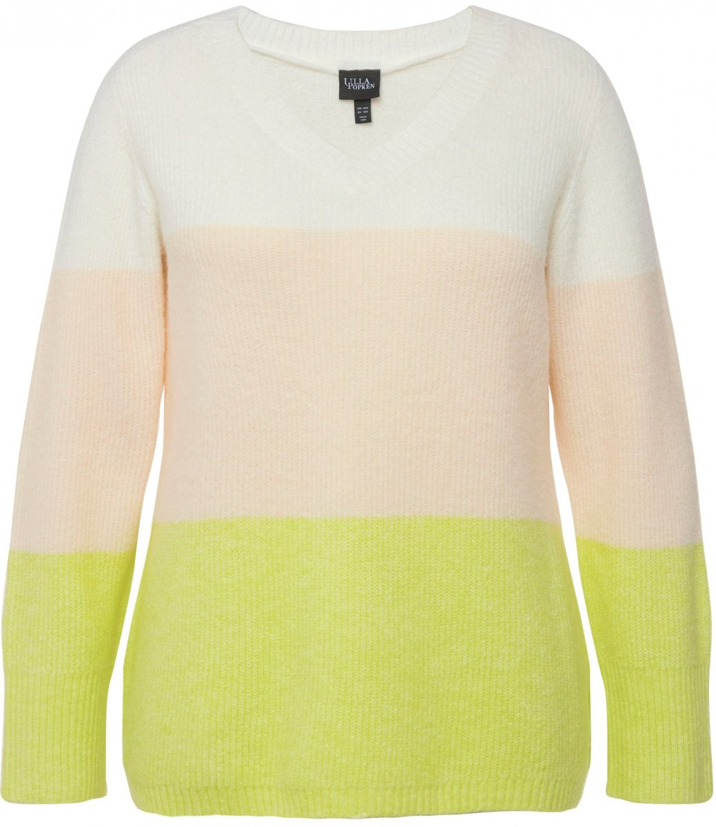 Dydžių vadovas - Ulla Popken Block Stripe Long Sleeve V-Neck Sweater Lime Green