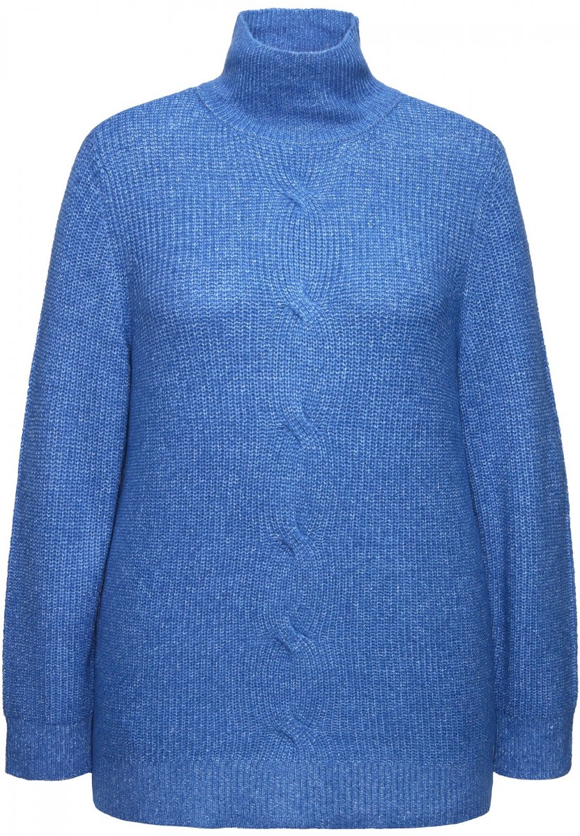 Ulla Popken Cable Knit Long Sleeve Turtleneck Sweater Teal Blue
