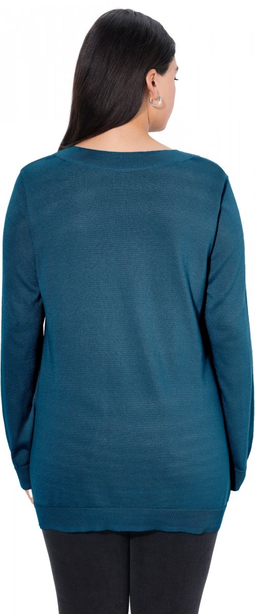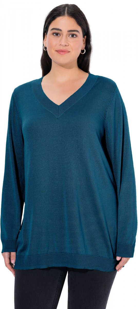 Ulla Popken Casual V-Neck Long Sleeve Sweater Cerulean