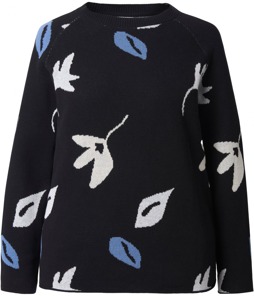 Dydžių vadovas - Ulla Popken Eco Cotton Leaf Pattern Long Sleeve Sweater Black