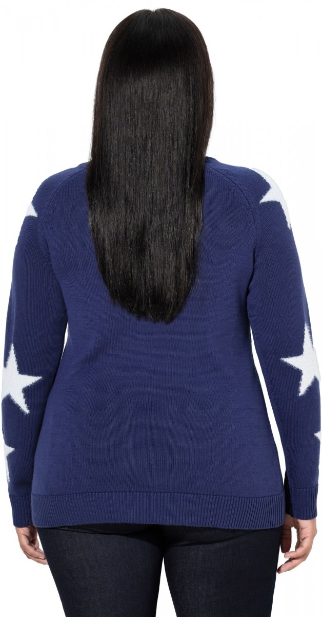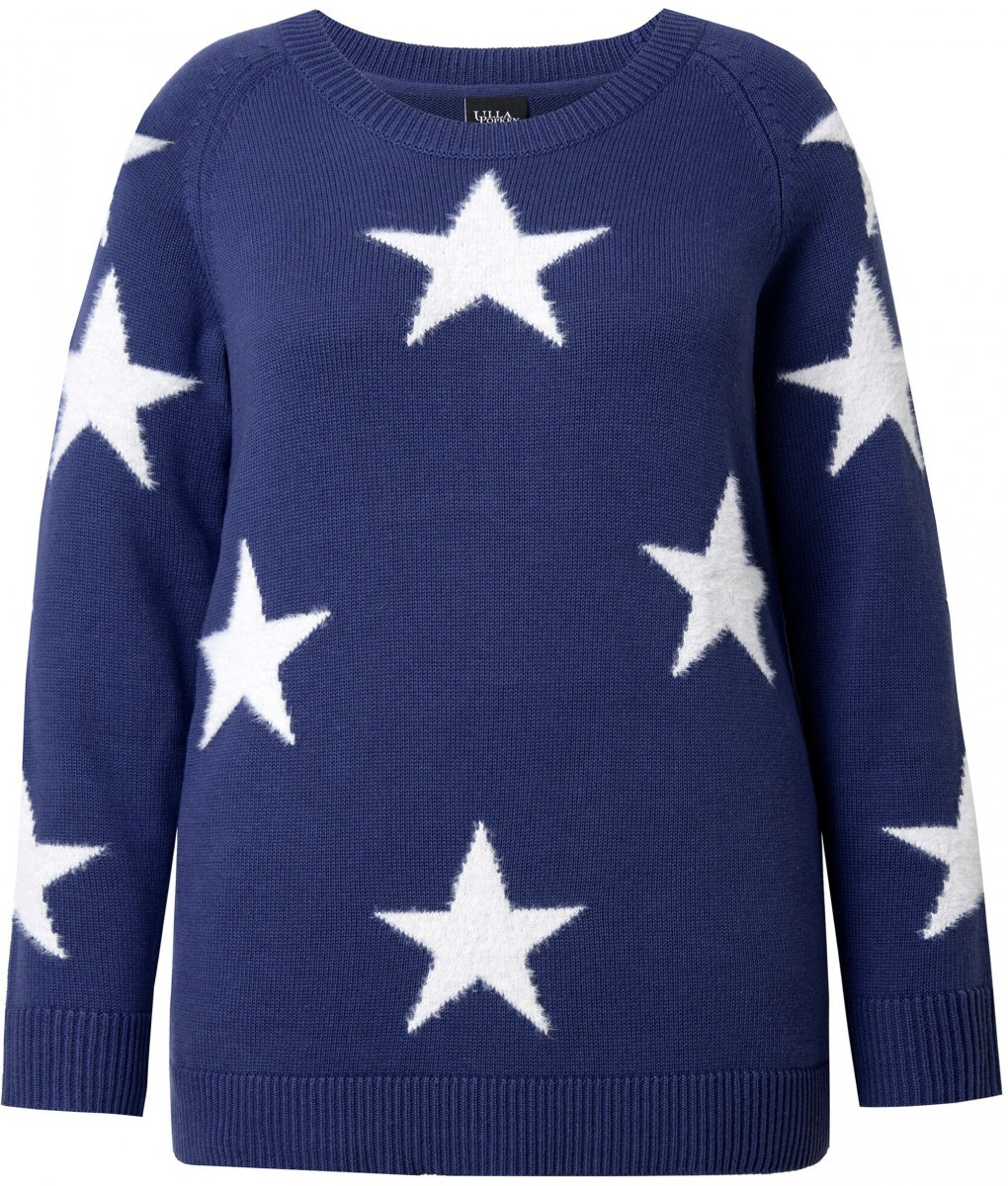 Dydžių vadovas - Ulla Popken Glitter Stars Soft Knit Sweater Blue