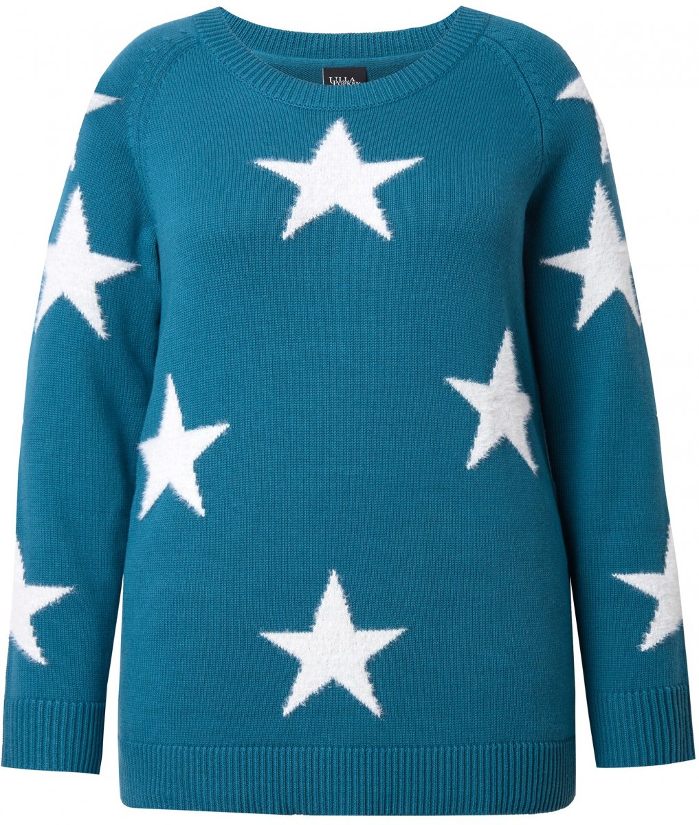 Dydžių vadovas - Ulla Popken Glitter Stars Soft Knit Sweater Petrol