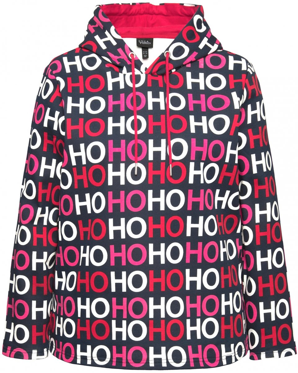 Dydžių vadovas - Ulla Popken Ho Ho Ho Lettering Hooded Sweatshirt Navy