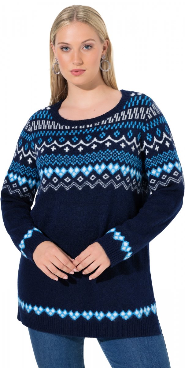 Dydžių vadovas - Ulla Popken Norwegian Style Pastel Tone Long Sleeve Sweater Ink Blue