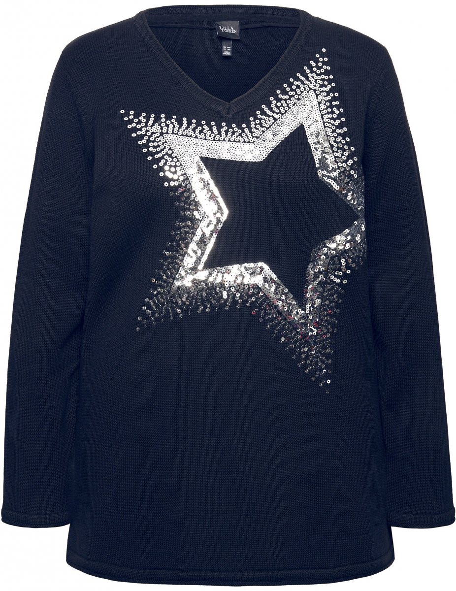 Moteriškas džemperisParduodame dydžiais nuo 2XL iki 5XLIš prekės ženklo Ulla PopkenGalimos spalvos: tamsiai mėlynaSpustelėkite čia, norėdami pamatyti dydžių vadovą