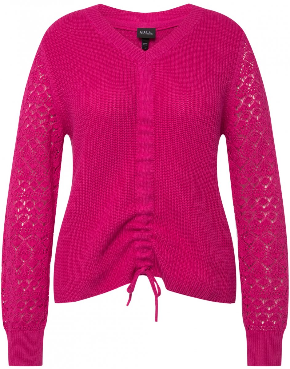 Dydžių vadovas - Ulla Popken Shaker Stitch Cropped Gathered Sweater Fuchsia Pink