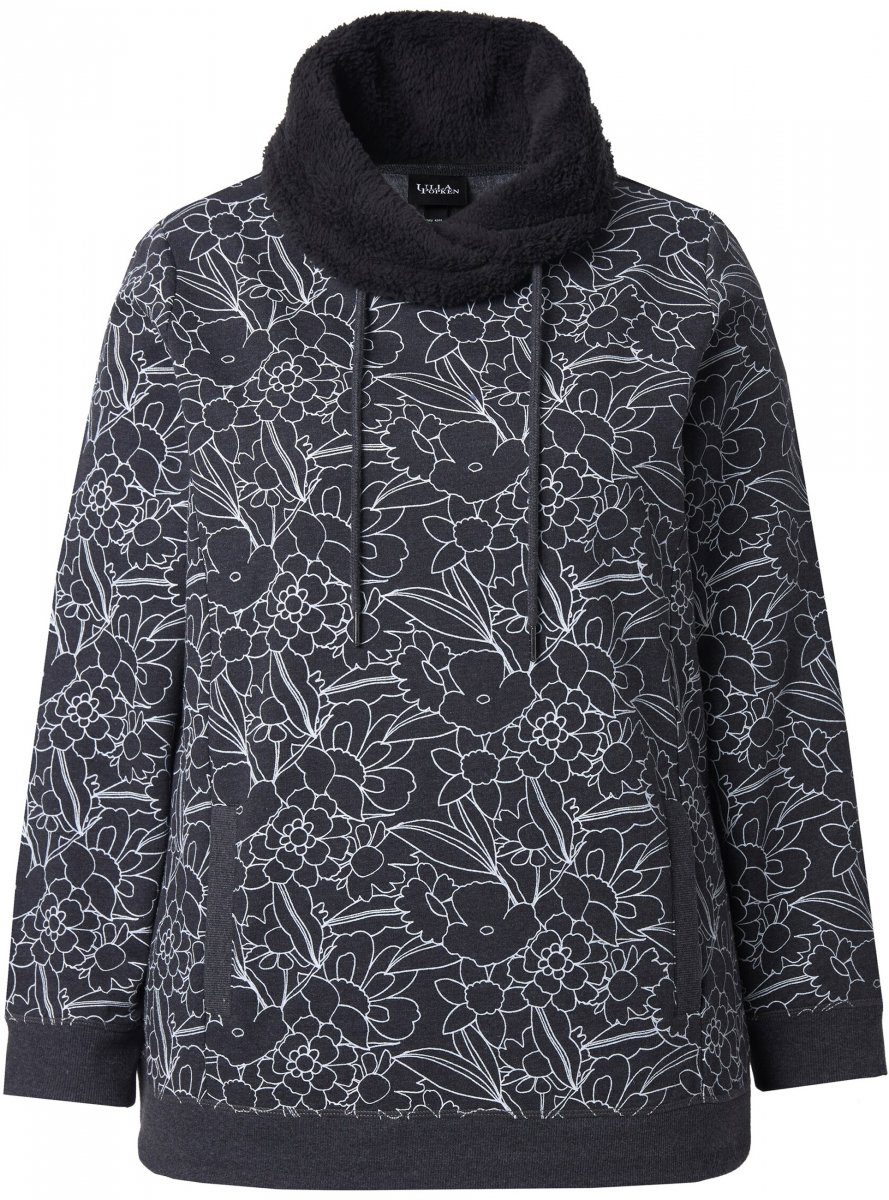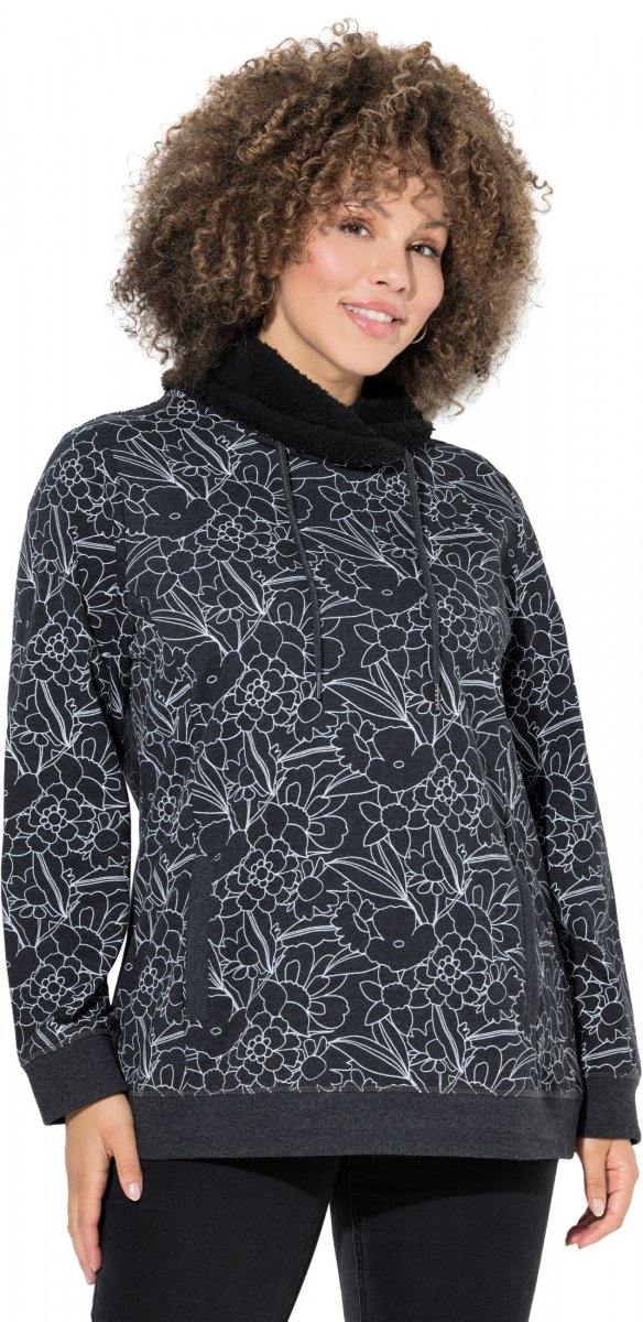 Dydžių vadovas - Ulla Popken Teddy Collar Printed Sweatshirt Black