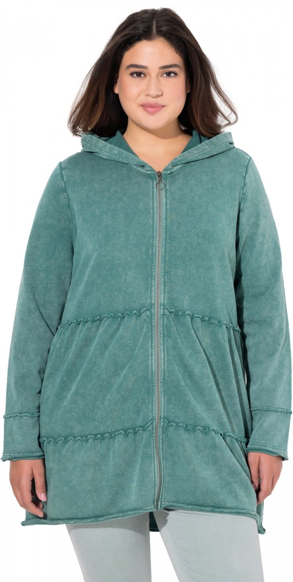 Ulla Popken Tiered Flounce Panel Zip Up Hoodie Green