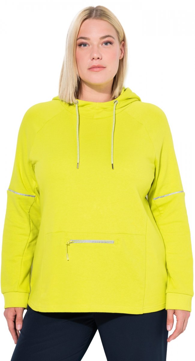 Dydžių vadovas - Ulla Popken Zippered Pocket and Reflective Piping Hoodie Green Apple