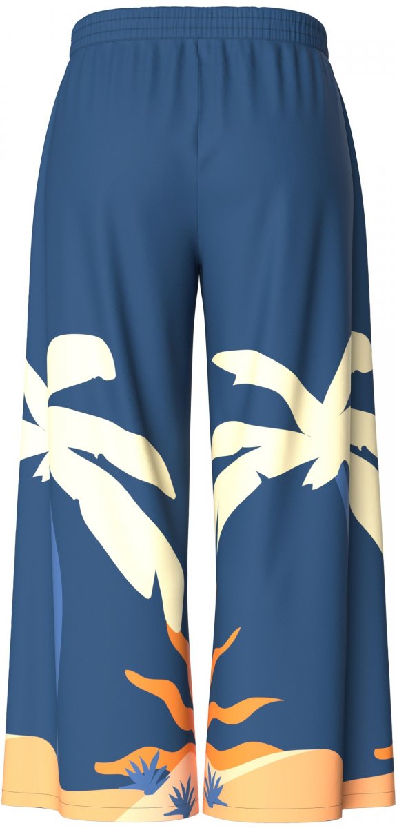 Ulla Popken Abstract Landscape Elastic Waist Palazzo Pants Blue