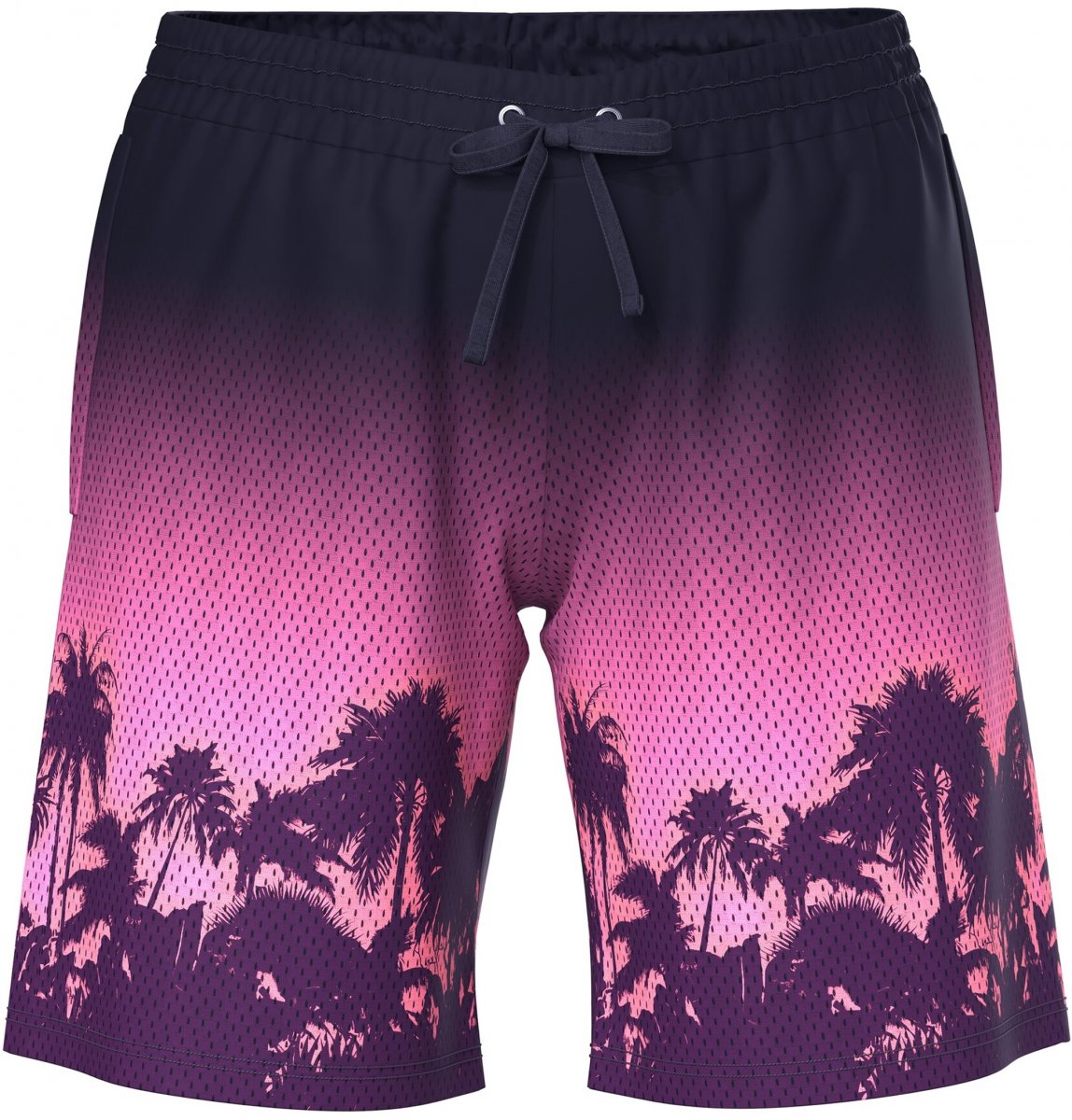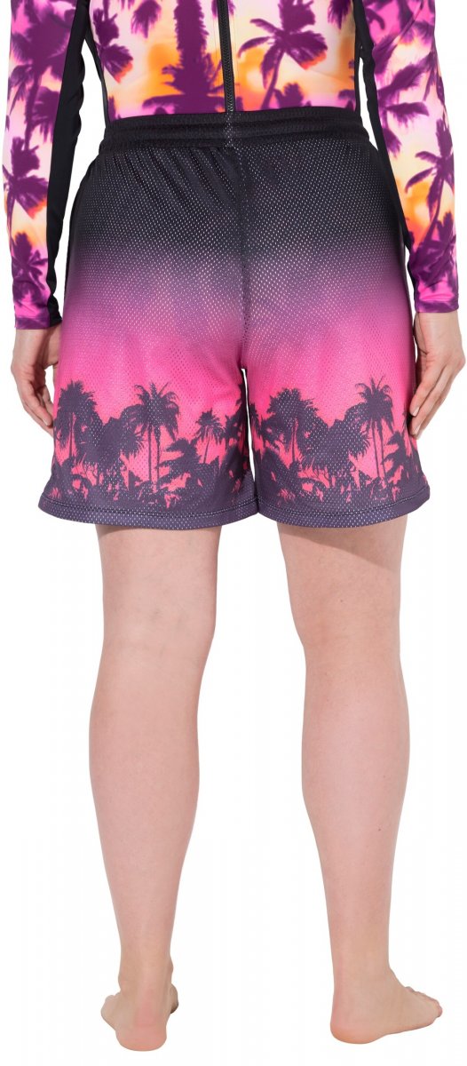 Ulla Popken Active Wide Leg Elastic Waist Palm Tree Pattern Mesh Shorts Black