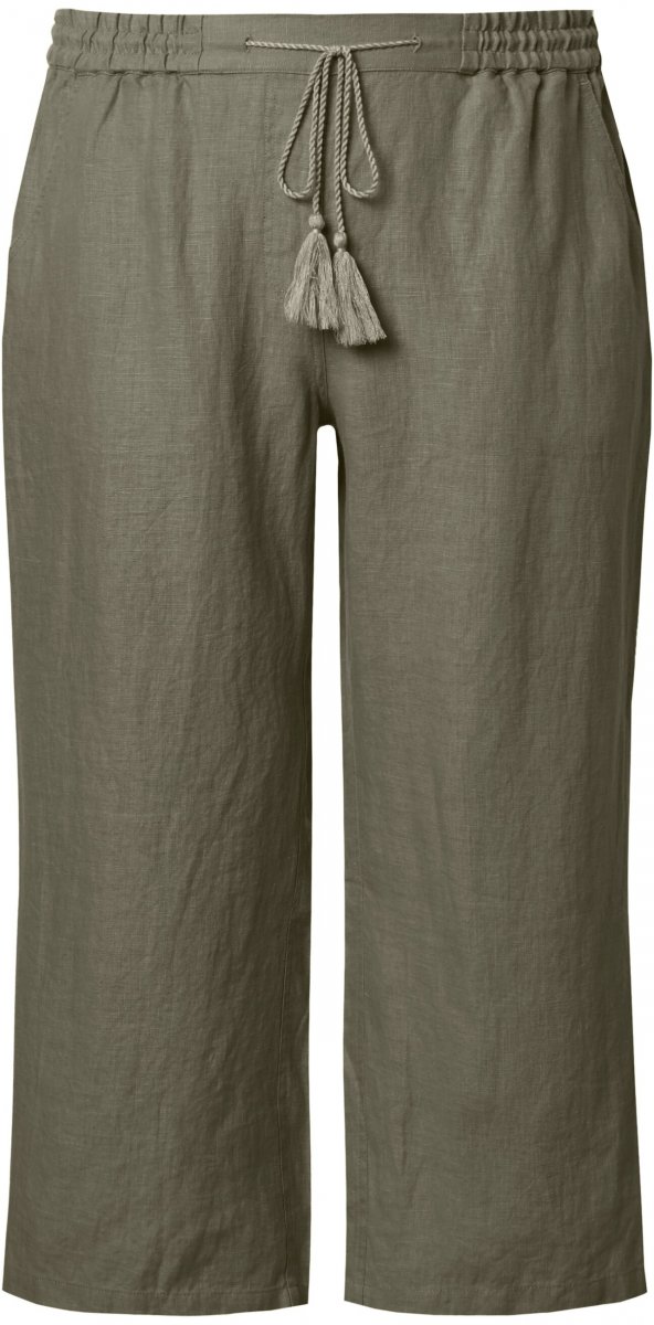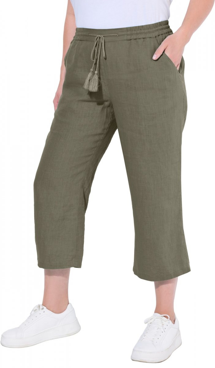 Dydžių vadovas - Ulla Popken Cool Linen Elastic Waist Capri Pants Loden Green
