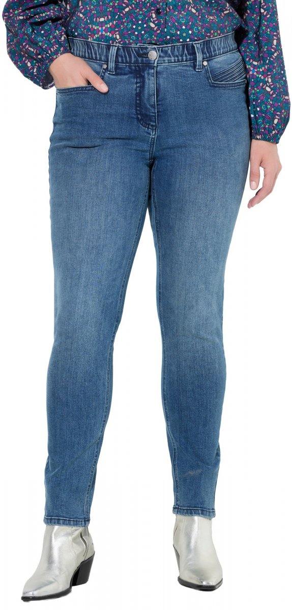 Dydžių vadovas - Ulla Popken Decorative Pocket Slim Stretch Jeans Blue Denim