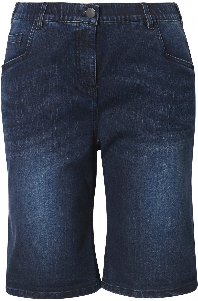 Dydžių vadovas - Ulla Popken Denim Wide Leg Elastic Waist Bermuda Shorts Denim Blue