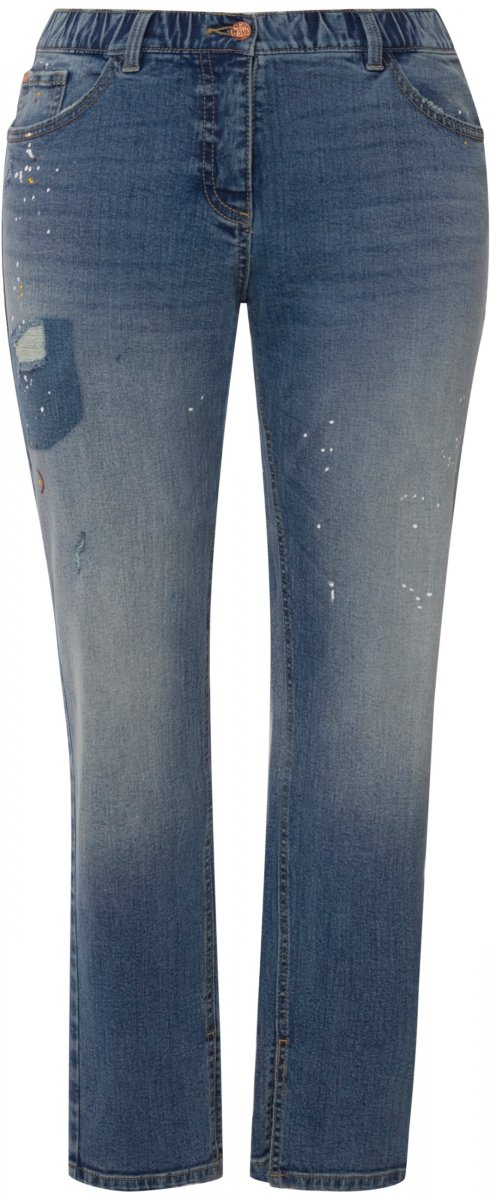 Dydžių vadovas - Ulla Popken Distressed Stretch Fit Boyfriend Jeans Blue Denim