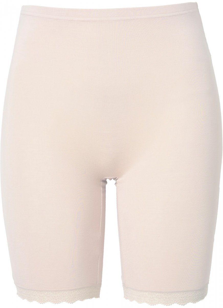 Ulla Popken Lace Hem Stretch Viscose Knit Bicycle Length Lounge Shorts Beige