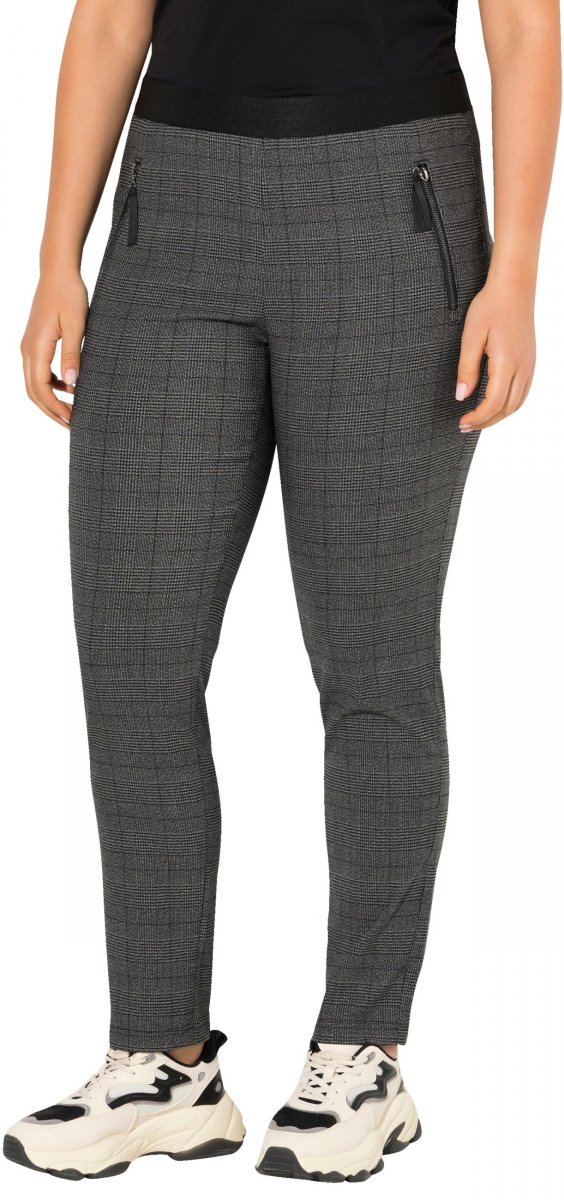 Ulla Popken Plaid Elastic Waist Tapered Leg Pants Black