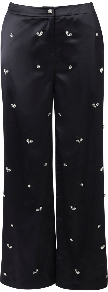 Dydžių vadovas - Ulla Popken Rhinestone Detail Comfort Waist Pants Black