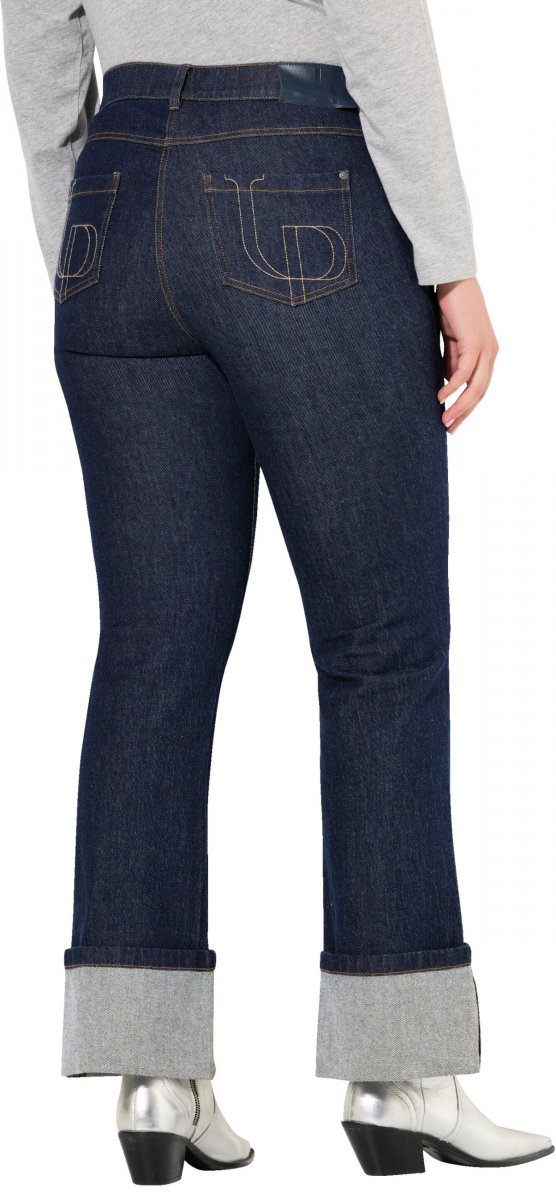 Dydžių vadovas - Ulla Popken Turn Up Hem Wide Leg Mary Jeans Grey Denim