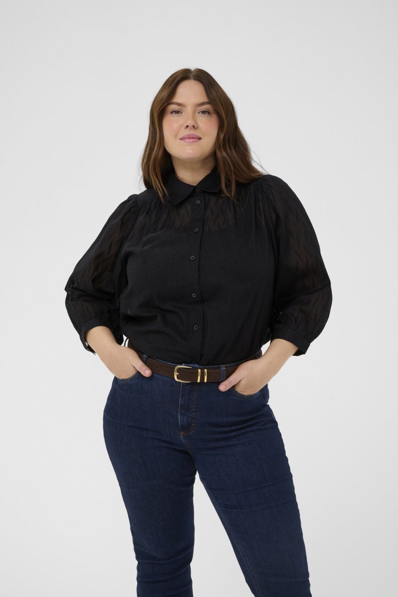 Marškiniai su trumpintomis rankovėmisGalima įsigyti 42–54 dydžiųIš prekės ženklo Kaffe CurvePagaminta iš 100% medvilnėsLaisvo kirpimoGalimos spalvos: juodaSpustelėkite čia, norėdami pamatyti dydžių vadovą