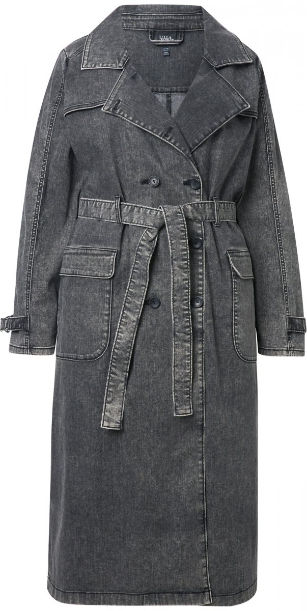Dydžių vadovas - Ulla Popken Denim Acid Wash Trench Coat Grey Denim