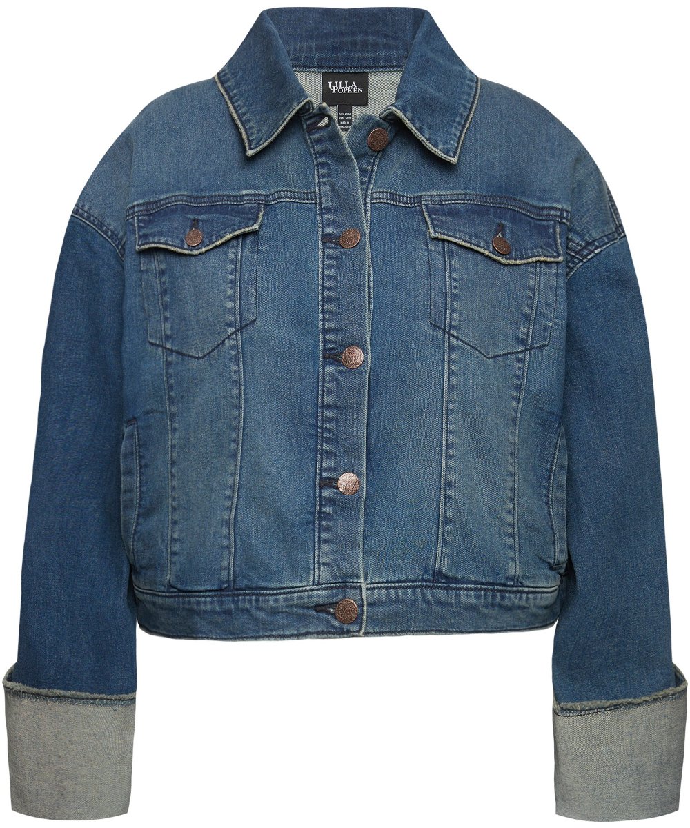 Dydžių vadovas - Ulla Popken Wide Cuff Denim Jacket Blue Denim