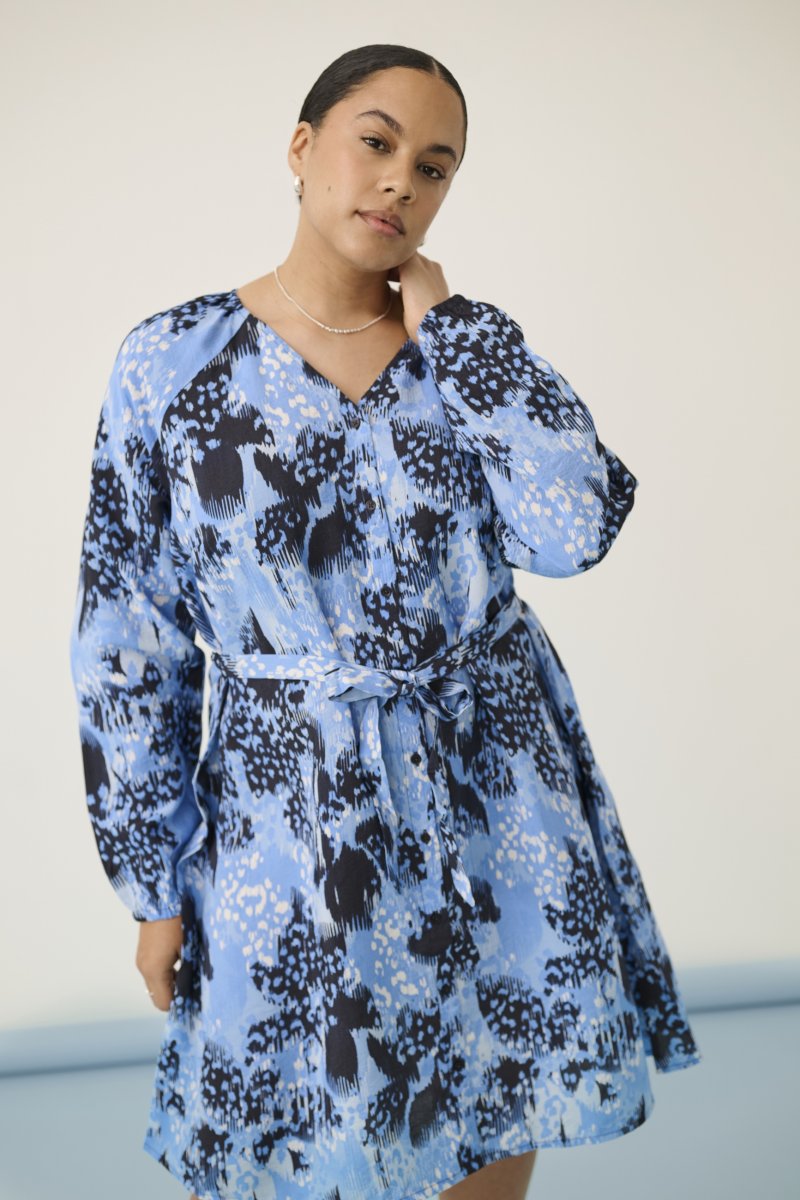 SuknelėGalima įsigyti 42–54 dydžiųIš prekės ženklo Kaffe CurveMedžiaga: 85 % viskozė, 15 % nailonasMidiGalimos spalvos: mėlynaSpustelėkite čia, norėdami pamatyti dydžių vadovą