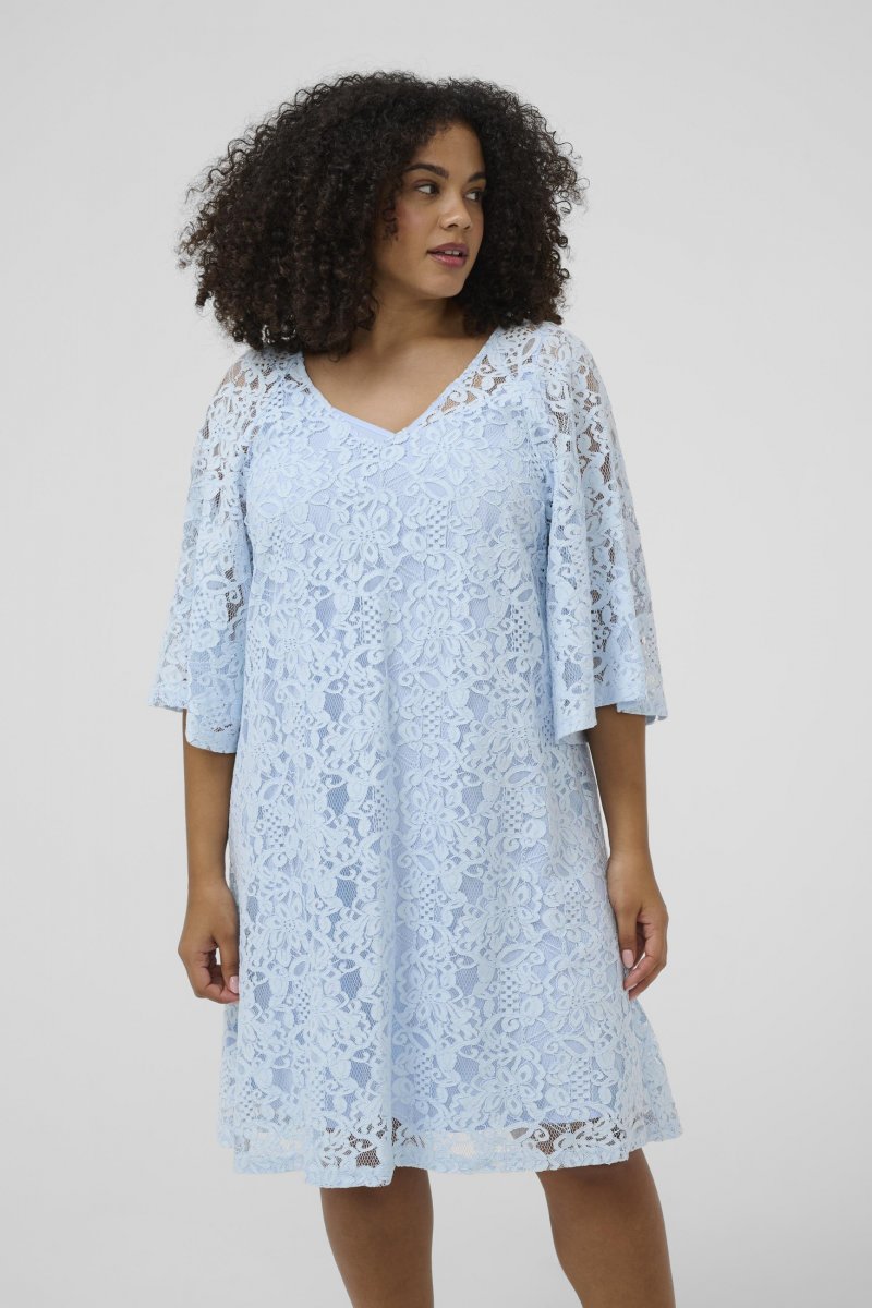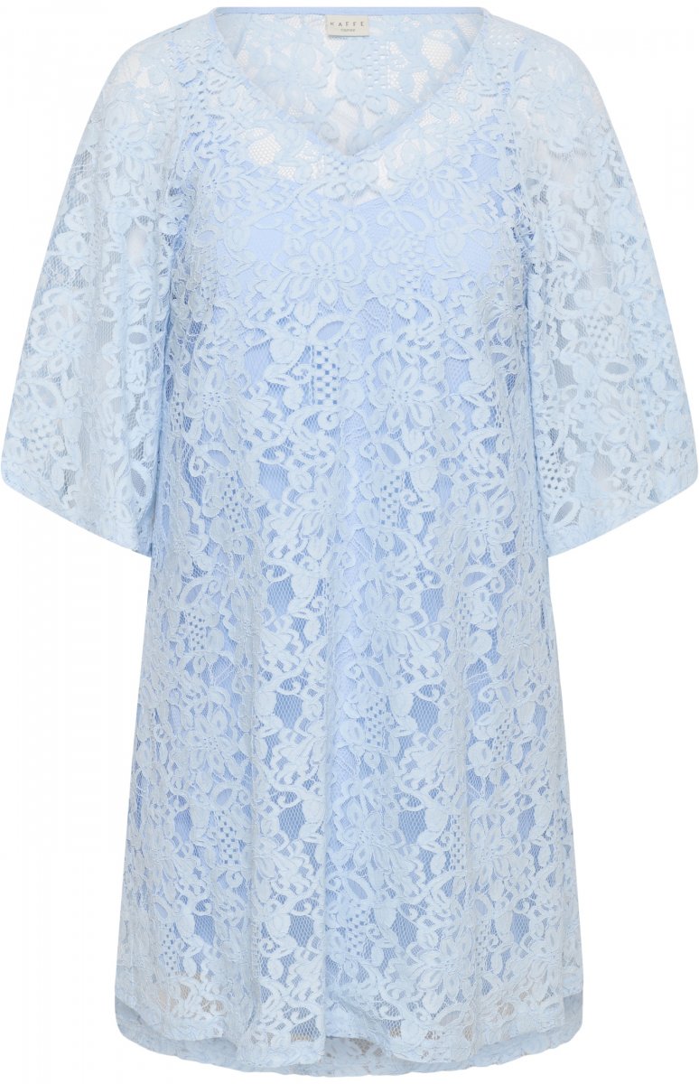 SuknelėGalima įsigyti 42–54 dydžiųIš prekės ženklo Kaffe CurveMedžiaga: 80 % medvilnė, 20 % poliamidasA siluetoGalimos spalvos: mėlynaSpustelėkite čia, norėdami pamatyti dydžių vadovą
