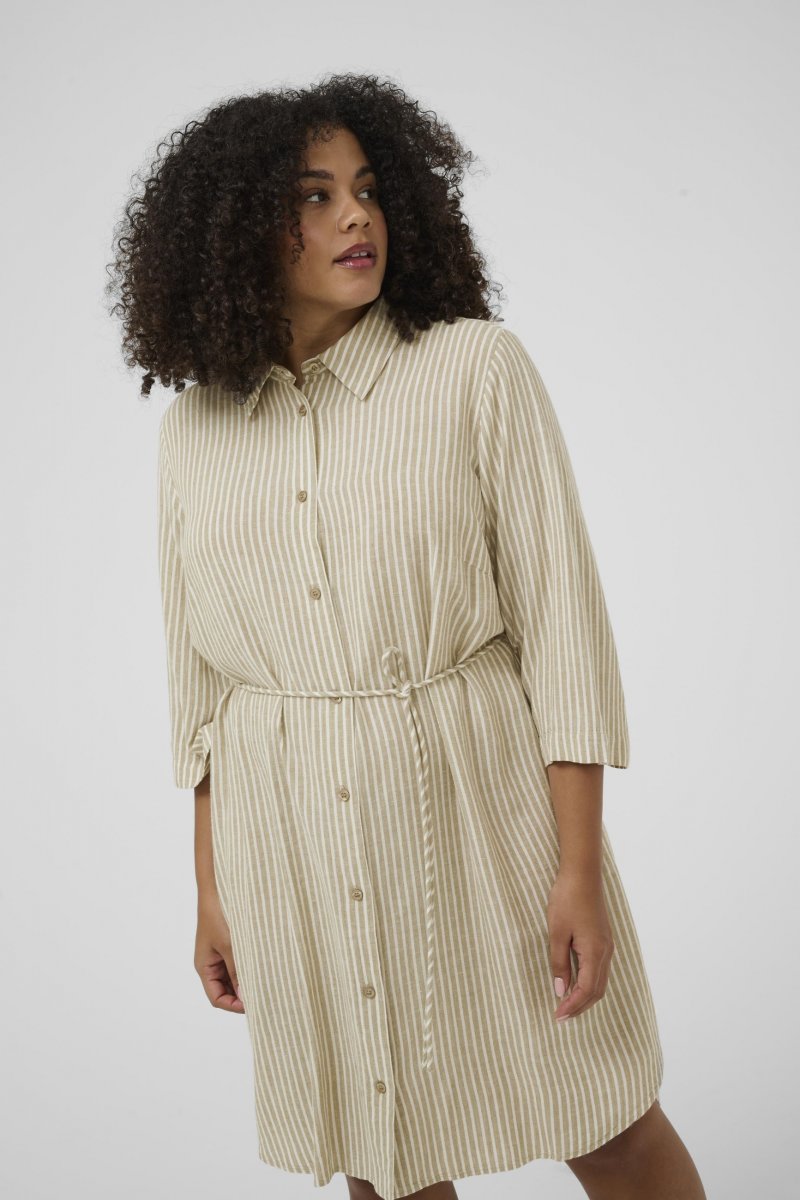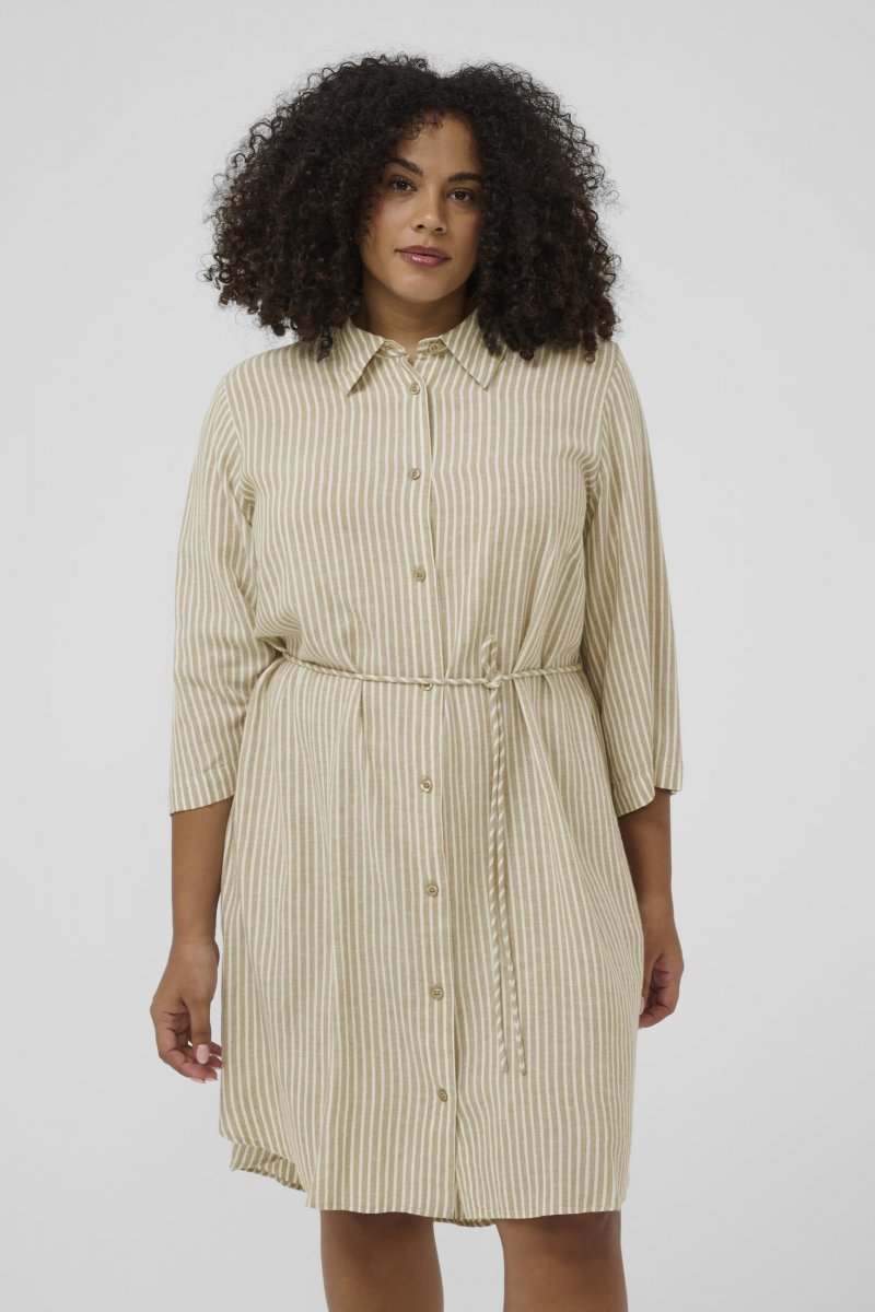 SuknelėGalima įsigyti 42–54 dydžiųIš prekės ženklo Kaffe CurveMedžiaga: 70 % viskozė (LivaEco™), 30 % linasLaisvo kirpimoGalimos spalvos: smėlioSpustelėkite čia, norėdami pamatyti dydžių vadovą