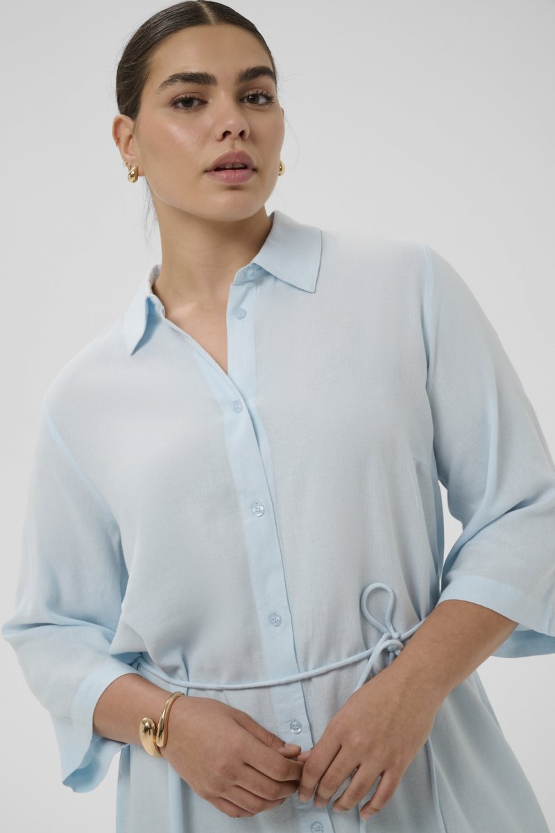 SuknelėGalima įsigyti 42–54 dydžiųIš prekės ženklo Kaffe CurveMedžiaga: 70 % viskozė (LivaEco™), 30 % linasLaisvo kirpimoGalimos spalvos: mėlynaSpustelėkite čia, norėdami pamatyti dydžių vadovą