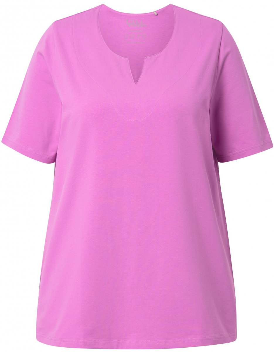 Dydžių vadovas - Ulla Popken Essential Notch Neck Stretch Tee Cool Pink