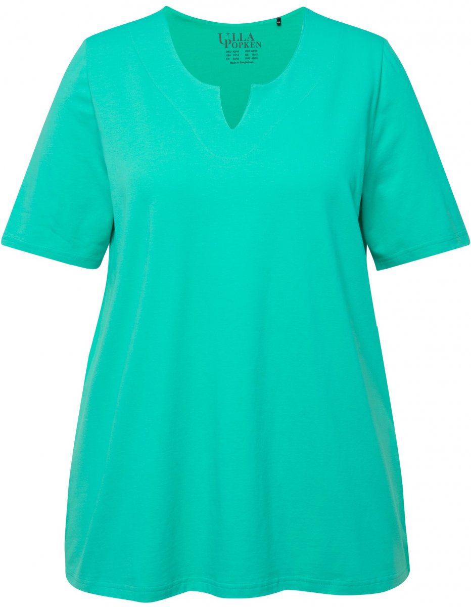Dydžių vadovas - Ulla Popken Essential Notch Neck Stretch Tee Turquoise Green